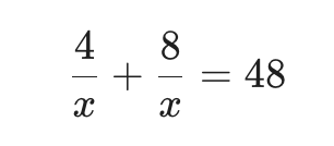 Now we just have a simple fraction problem. Since both terms on the left have a common denominator, x, we can just add the numerators: 4+8 gives us 12.